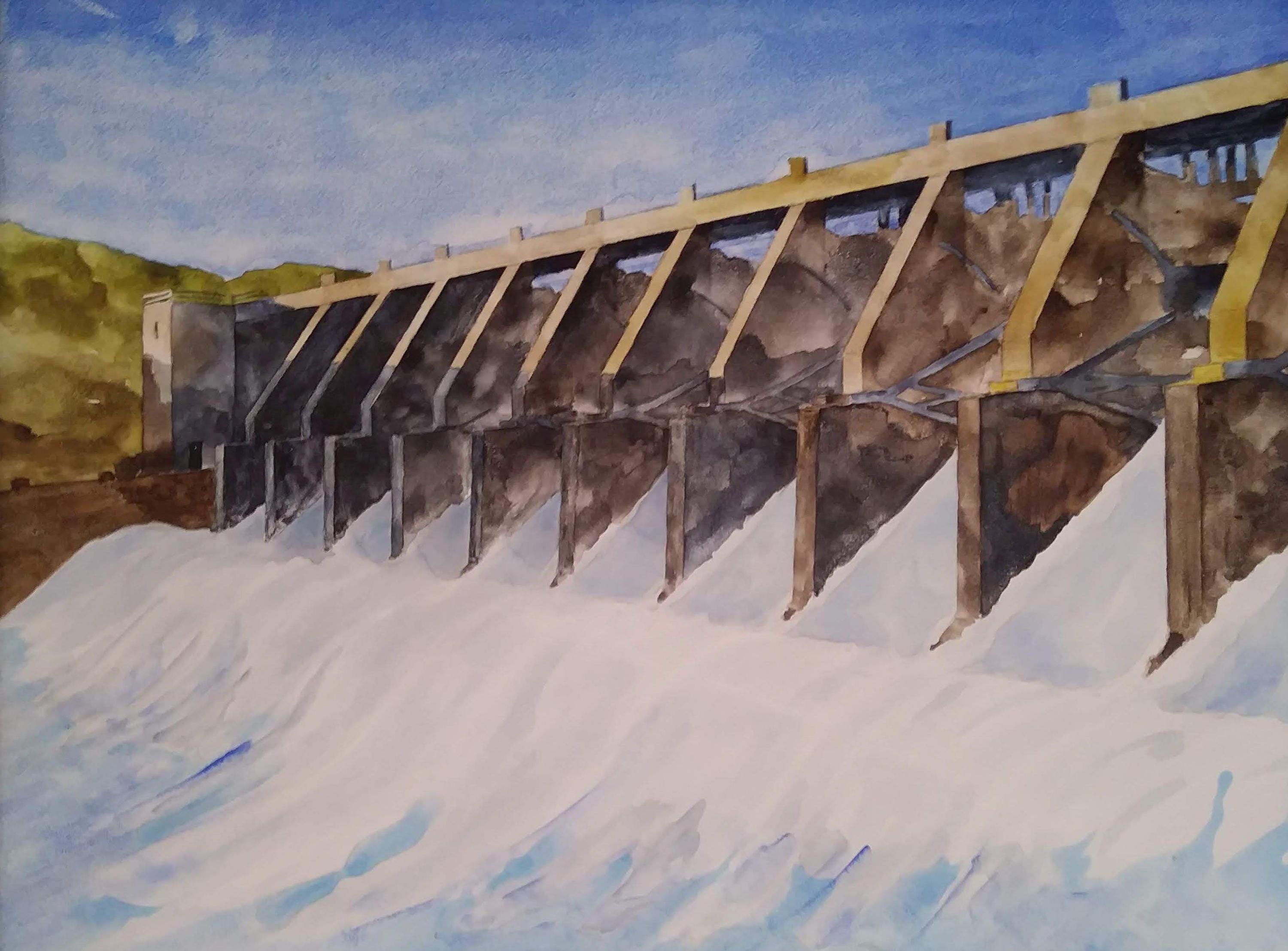 Mo River Dam in Yankton, SD (watercolor)